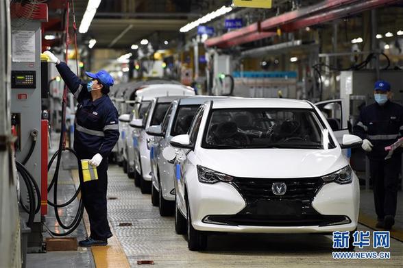 工人在合肥市高新技術(shù)產(chǎn)業(yè)開發(fā)區(qū)合肥長安汽車有限公司車間忙碌(2月26日攝)。新華社發(fā)(周牧 攝)