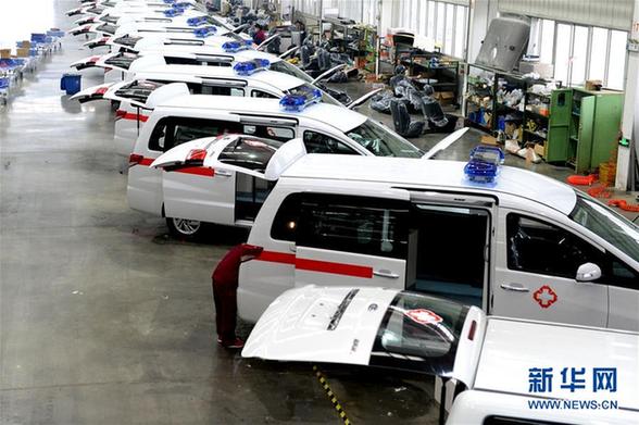 工作人員在江淮汽車商務(wù)車公司改裝救護(hù)車(2月25日攝)。新華社發(fā)(黃博涵 攝)