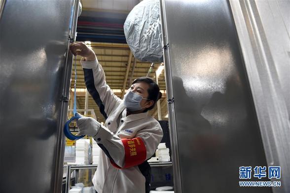 在合肥海爾工業(yè)園,工人在冰箱生產(chǎn)線上工作(3月4日攝)。新華社發(fā)(周牧 攝)