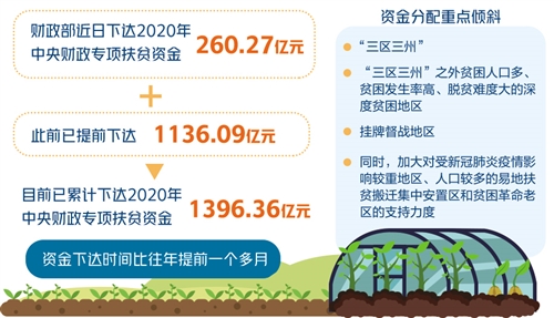 如期高質(zhì)量打贏脫貧攻堅(jiān)戰(zhàn),資金保障十分重要。近日,財(cái)政部下達(dá)各地2020年中央財(cái)政專(zhuān)項(xiàng)扶貧資金260.27億元,加上提前下達(dá)的資金,目前已累計(jì)下達(dá)2020年中央財(cái)政專(zhuān)項(xiàng)扶貧資金1396.36億元,下達(dá)時(shí)間比往年提前一個(gè)多月。