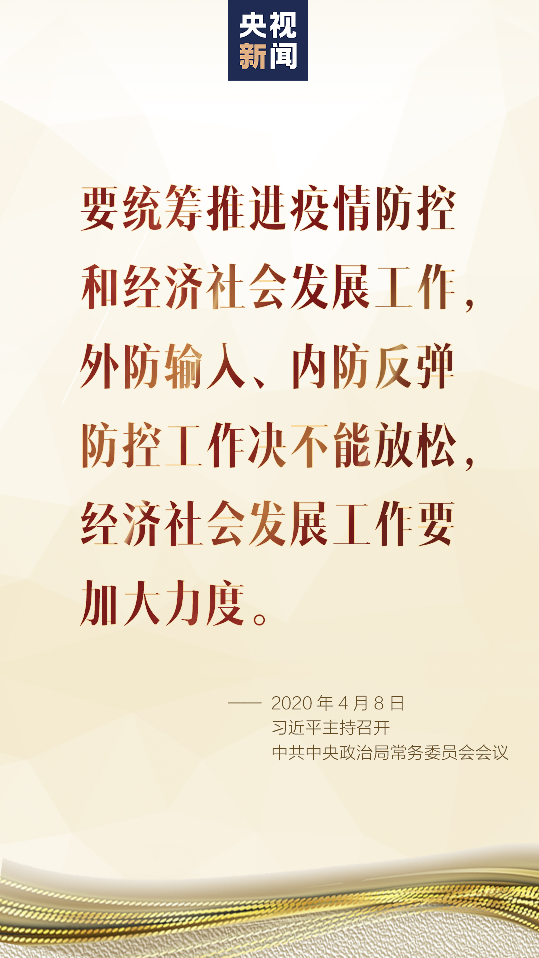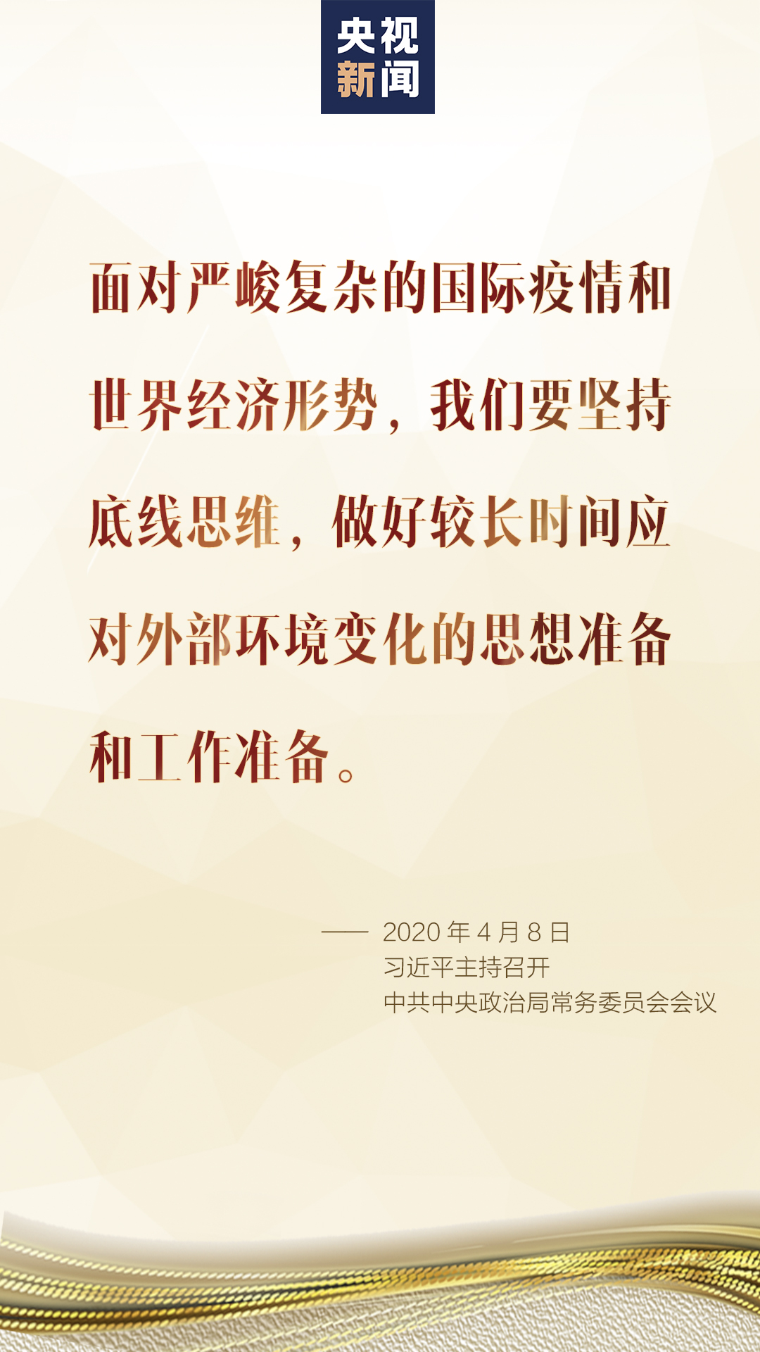 8日,習(xí)近平總書(shū)記主持召開(kāi)中共中央政治局常務(wù)委員會(huì)會(huì)議并發(fā)表重要講話。他強(qiáng)調(diào),當(dāng)前我國(guó)疫情防控階段性成效進(jìn)一步鞏固,復(fù)工復(fù)產(chǎn)取得重要進(jìn)展,經(jīng)濟(jì)社會(huì)運(yùn)行秩序加快恢復(fù)。同時(shí),國(guó)際疫情持續(xù)蔓延,世界經(jīng)濟(jì)下行風(fēng)險(xiǎn)加劇,不穩(wěn)定不確定因素顯著增多。