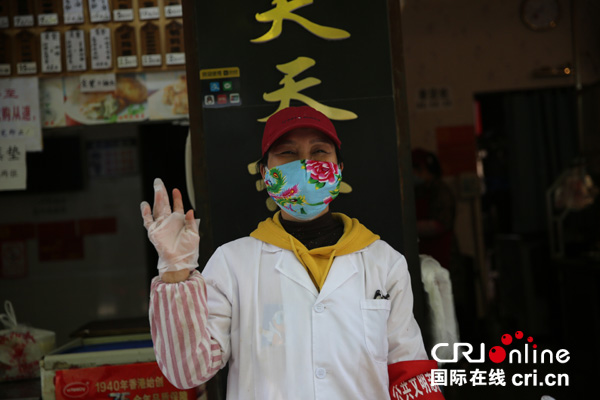 趙友芝說:“我們比平時起得早些,有些消毒工作要安排,要做衛(wèi)生,全面消毒、量體溫等等,防護(hù)工作要做好,所以要起早些,比沒有疫情(時)要提前一個小時到店。”