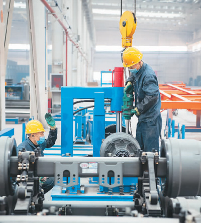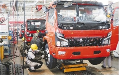 5月3日,位于湖北省襄陽(yáng)市的東風(fēng)汽車股份有限公司工程車事業(yè)部二總裝車間里一派熱火朝天的景象,為趕生產(chǎn)任務(wù),工程車事業(yè)部每天排產(chǎn)近100臺(tái),達(dá)同期產(chǎn)能水平150%。圖為裝配工人正在緊張地忙碌。王 虎攝(人民視覺)