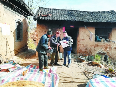 、芎幽蠙璐ǹh重渡溝管委會北鄉(xiāng)村第一書記彭海(右一)在走訪貧困戶。(本版圖片均為光明圖片)