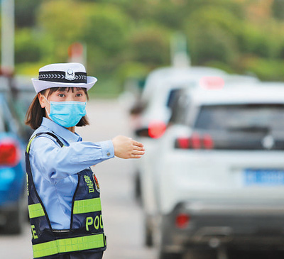 5月2日,貴州省丹寨萬達小鎮(zhèn),青年交警堅守崗位、指揮交通。陸德華攝(影像中國)