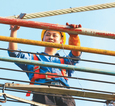 測量、搬運、安裝,馮盼和3名工友通力配合,一塊1.5米長的玻璃面板安裝一氣呵成。作為中建五局不二幕墻公司的一名建筑工人,馮盼和600多名工友一起,奮戰(zhàn)在湖南省重點項目岳麓山國家大學科技城建設(shè)工地上!耙院筮@里將是領(lǐng)先科技城、一流創(chuàng)業(yè)城,我能參與建設(shè),非常榮幸!”馮盼語帶自豪。