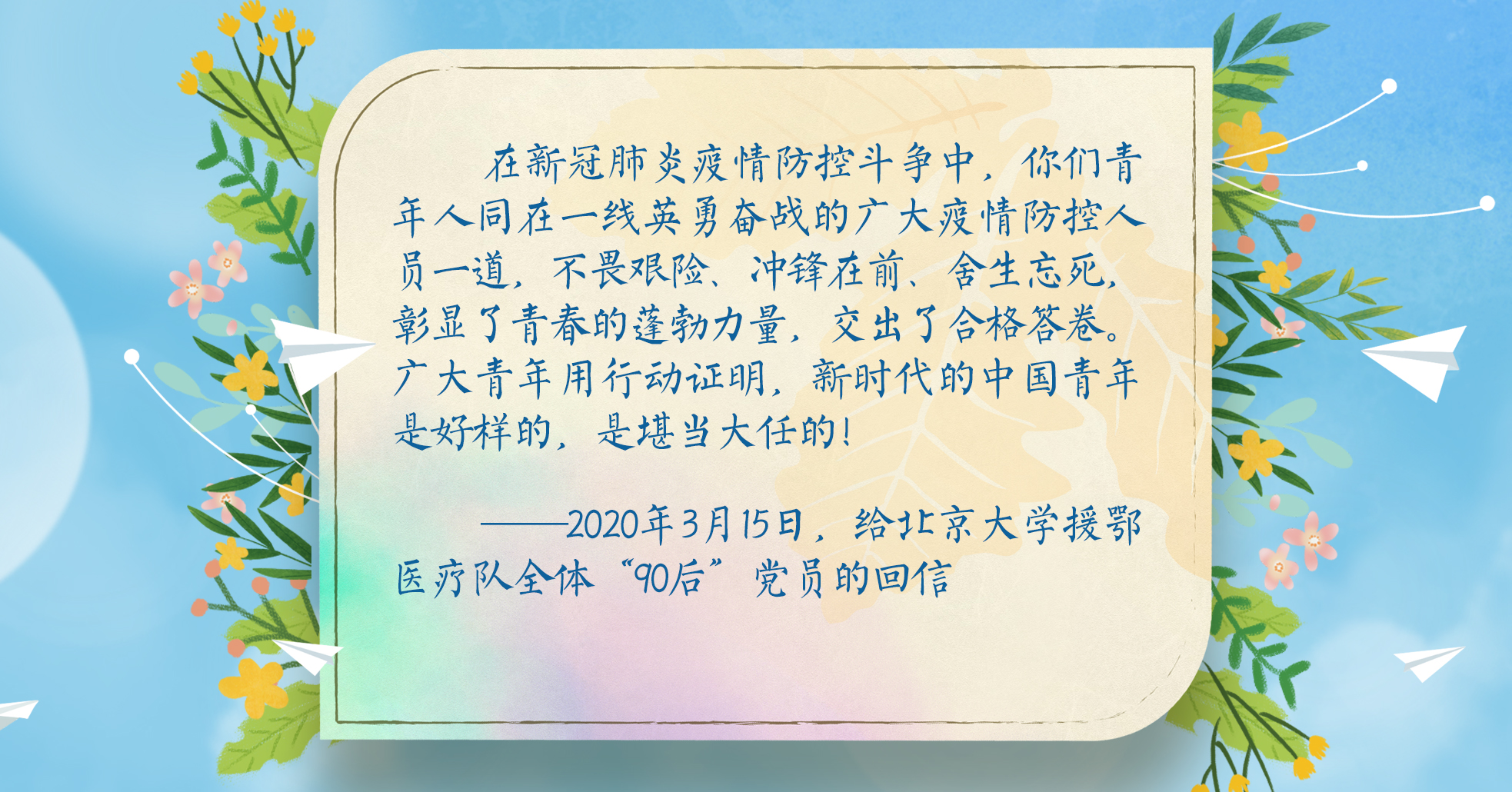 “五一”放假期間又適逢“五四”青年節(jié)。自新冠肺炎疫情發(fā)生以來,眾多“90后”、“95后”組成戰(zhàn)“疫”一線的青年突擊隊,發(fā)揚創(chuàng)新精神,不逃避不畏懼,以赤子之心回報國家和人民,以無私奉獻詮釋青春擔(dān)當(dāng)。