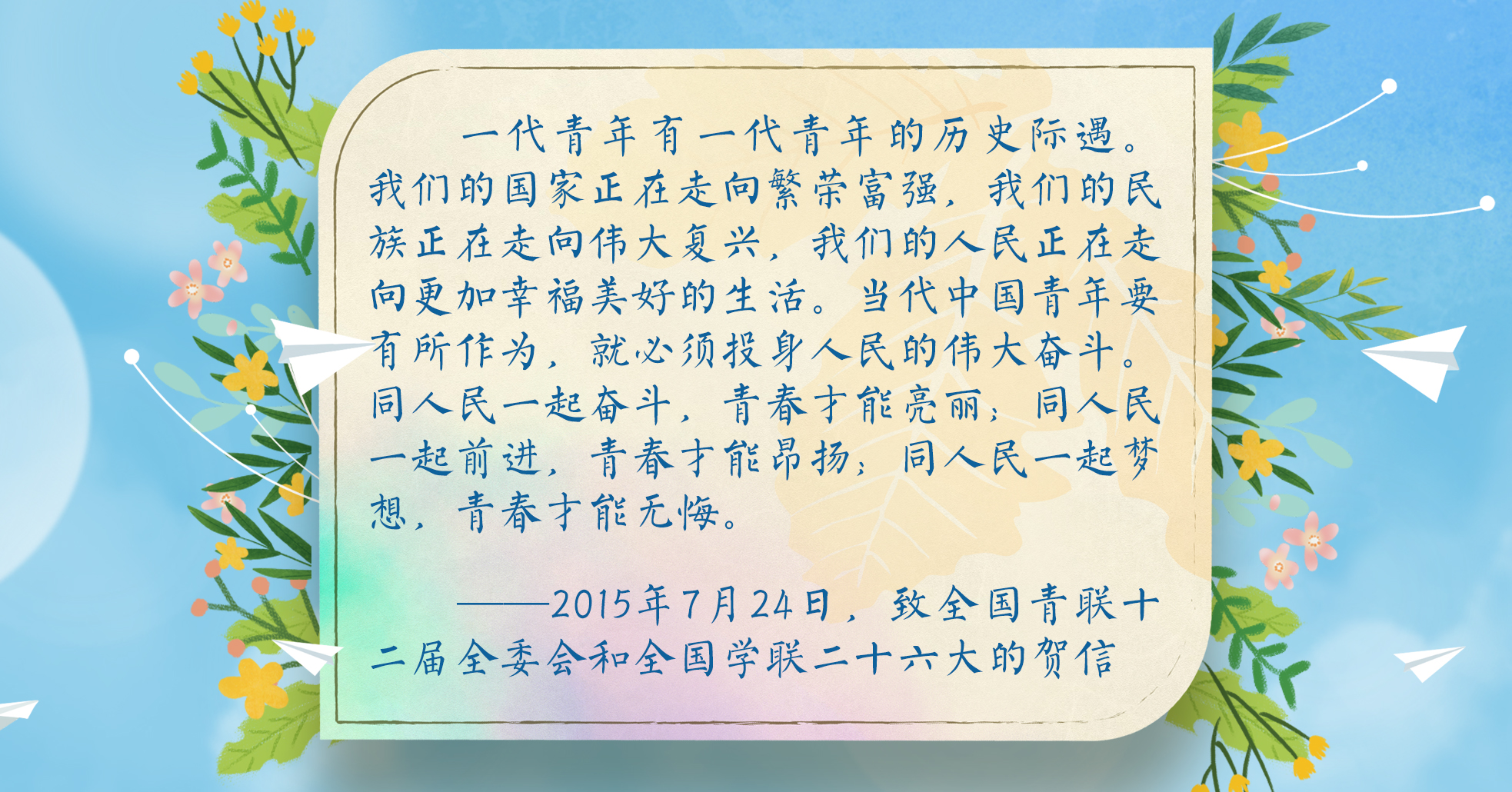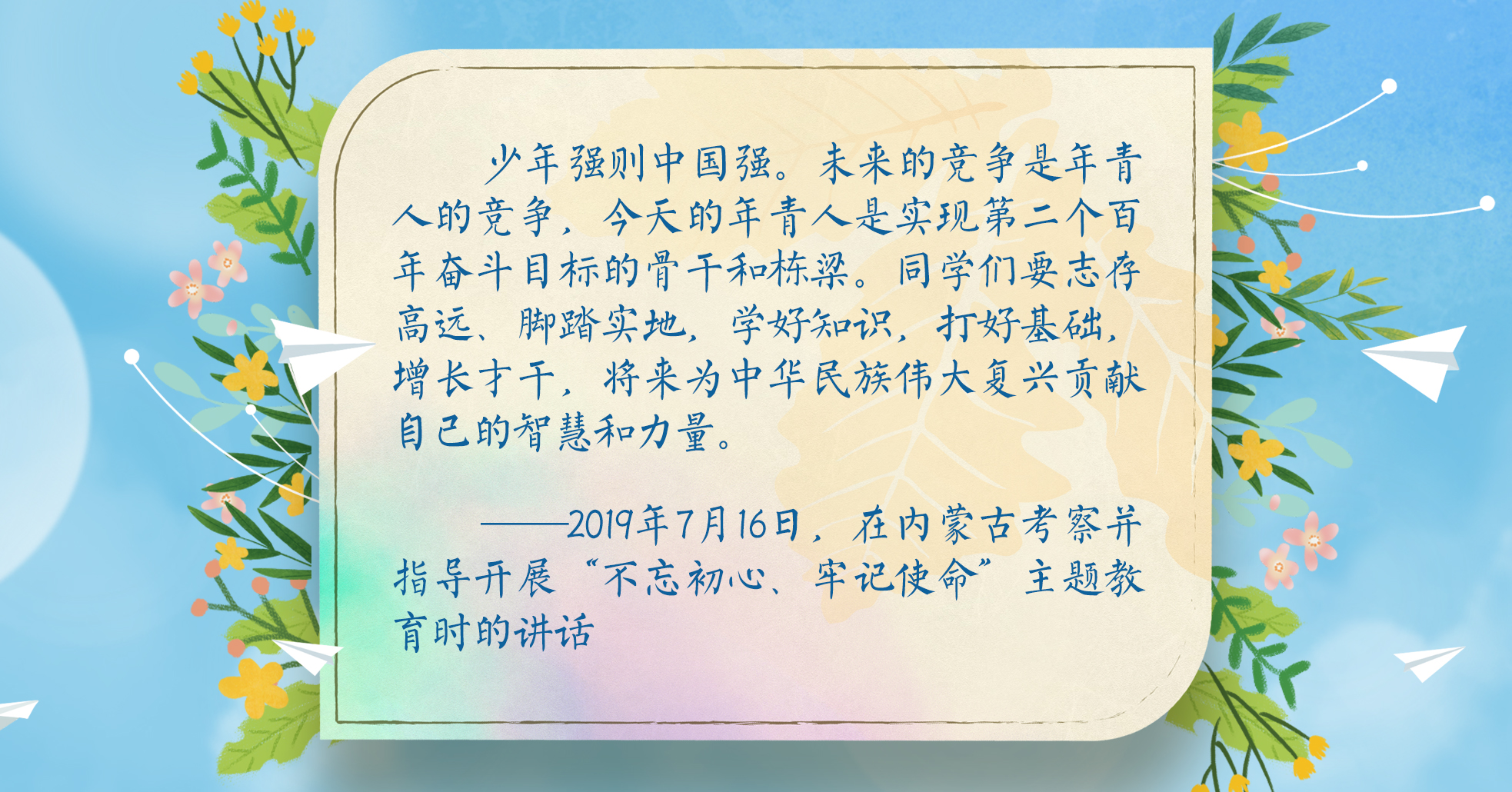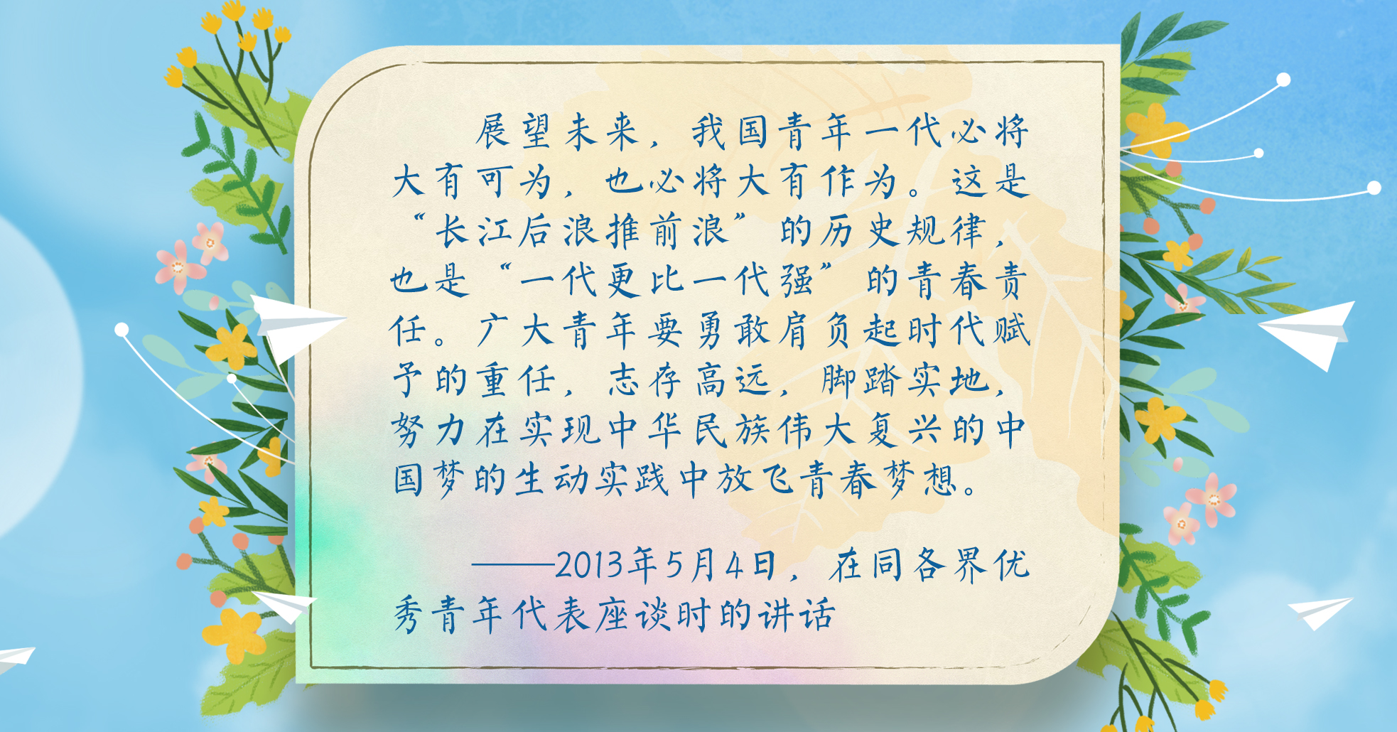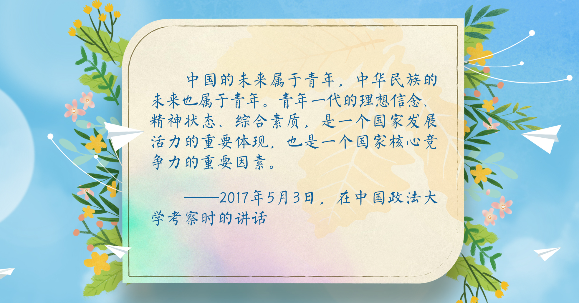 央視網(wǎng)《聯(lián)播+》梳理習(xí)近平總書記對新一代青年的深情寄語,讓我們牢記總書記囑托,激揚青春、逐夢前行!