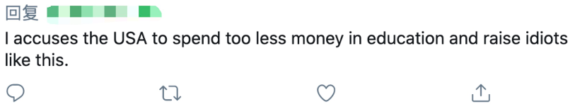 “我認(rèn)為美國(guó)在教育上投入的錢(qián)太少了,培養(yǎng)出這樣的白癡!薄