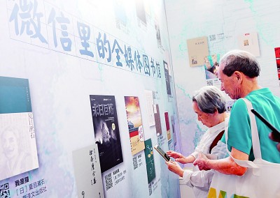 讀者通過(guò)手機(jī)掃碼體驗(yàn)全媒體圖書(shū)館。新華社發(fā)