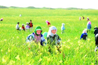 紅寺堡區(qū)太陽(yáng)山鎮(zhèn)興民村黃花菜采摘忙。本報(bào)記者 張文攀攝