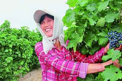 紅寺堡區(qū)紅寺堡鎮(zhèn)中圈塘村村民高慧珍的釀酒葡萄豐收。寧夏吳忠市紅寺堡區(qū)委宣傳部提供