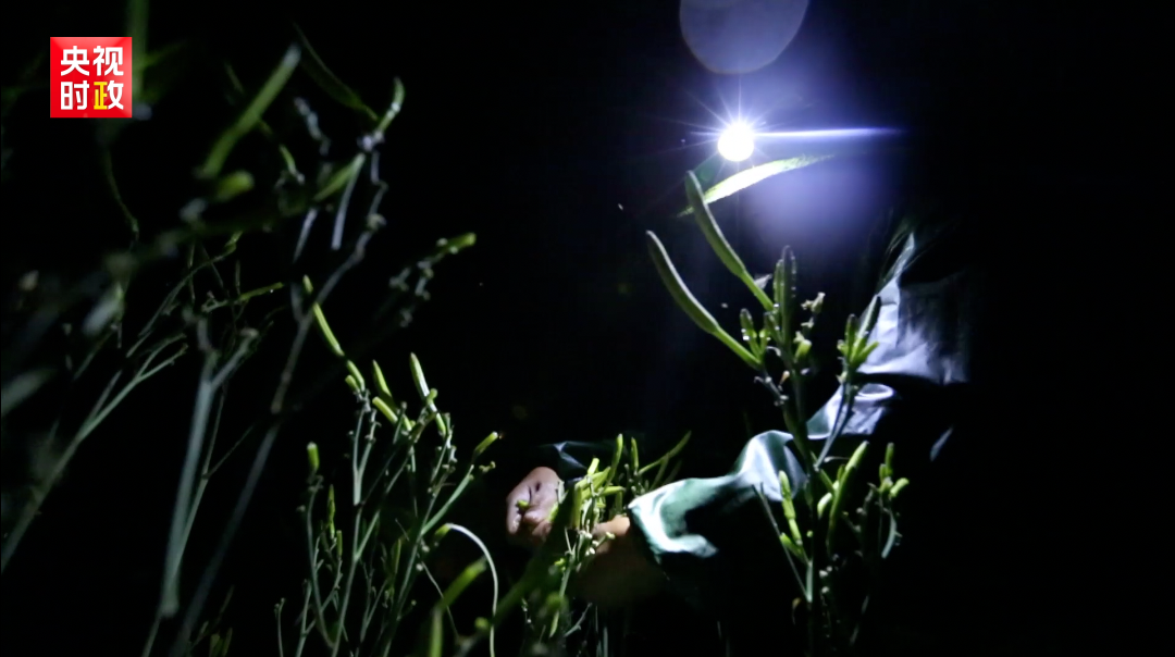 每天中午十二點,黃花開始逐漸開花。所以農(nóng)戶們?yōu)榱粟s在開花之前完成采摘,凌晨十二點就開始作業(yè)。