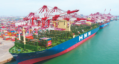 4月26日,載箱量2.4萬標(biāo)準(zhǔn)箱的全球首艘最大集裝箱班輪——THE聯(lián)盟“HMM阿爾赫西拉斯”輪首航儀式在山東港口青島港舉行,標(biāo)志著山東港口集裝箱業(yè)務(wù)邁入2.4萬標(biāo)準(zhǔn)箱“大船時(shí)代”。