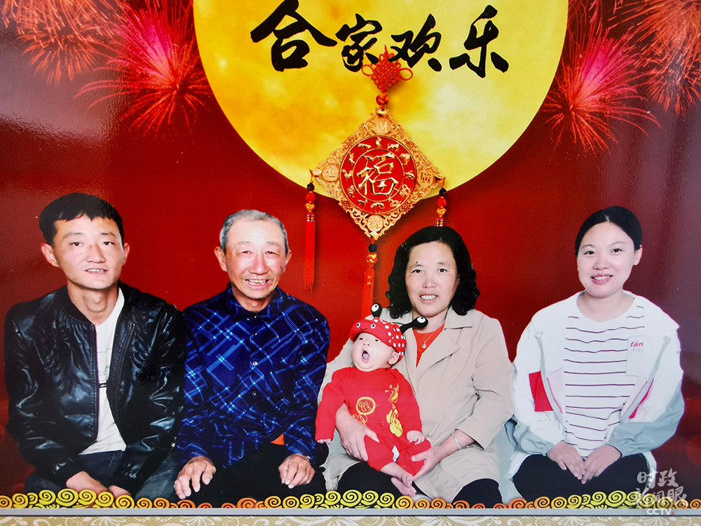 △這是今年4月,白利軍的兒子過(guò)滿月當(dāng)天拍攝的全家福。(總臺(tái)央視記者史偉拍攝)