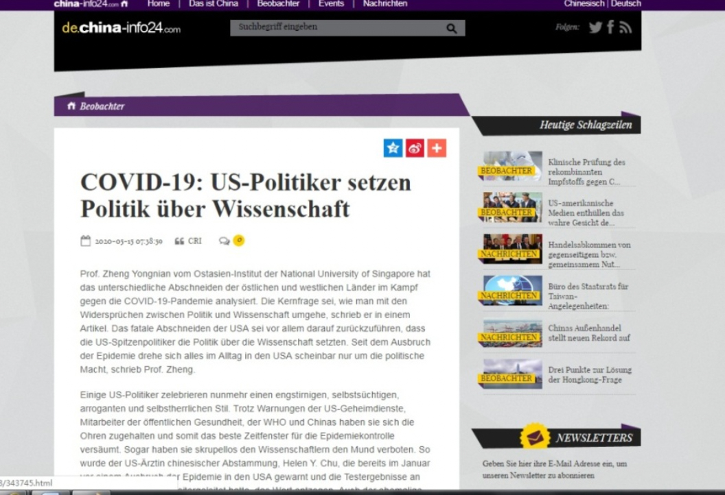 《歐洲時(shí)報(bào)》德文網(wǎng)5月15日刊發(fā)題為《美國(guó)政客將政治置于科學(xué)之上》的文章指出:“受狹隘的政治私利以及專橫傲慢的作風(fēng)驅(qū)動(dòng),美國(guó)政客屢屢把來自本國(guó)情報(bào)機(jī)構(gòu)、公共衛(wèi)生人士、世衛(wèi)組織和中國(guó)等多方的疫情警告當(dāng)作‘耳旁風(fēng)’,一而再錯(cuò)失最佳防護(hù)窗口期,導(dǎo)致疫情風(fēng)險(xiǎn)在積聚中暴發(fā)并最終失控。”