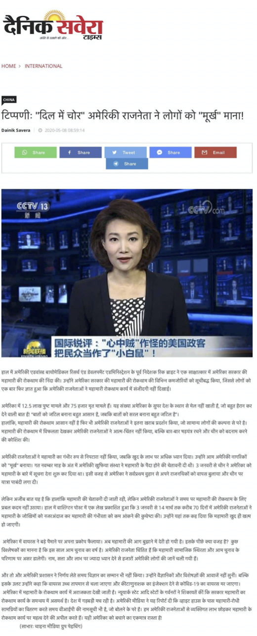 △印度《每日晨報(bào)》官網(wǎng)刊文
