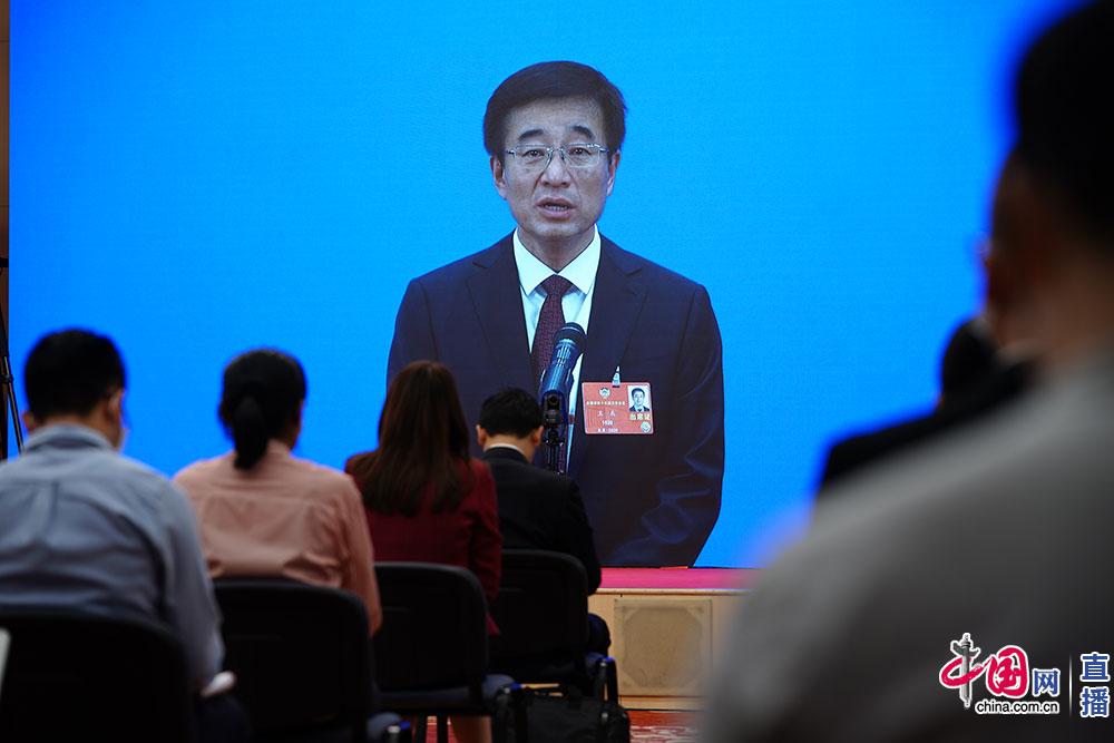 在梅地亞兩會(huì)新聞中心多功能廳分會(huì)場(chǎng),全國(guó)政協(xié)委員,中國(guó)醫(yī)學(xué)科學(xué)院和中國(guó)工程院呼吸與危重癥醫(yī)學(xué)臨床醫(yī)生王辰通過網(wǎng)絡(luò)視頻方式接受媒體采訪。中國(guó)網(wǎng) 楊佳攝影