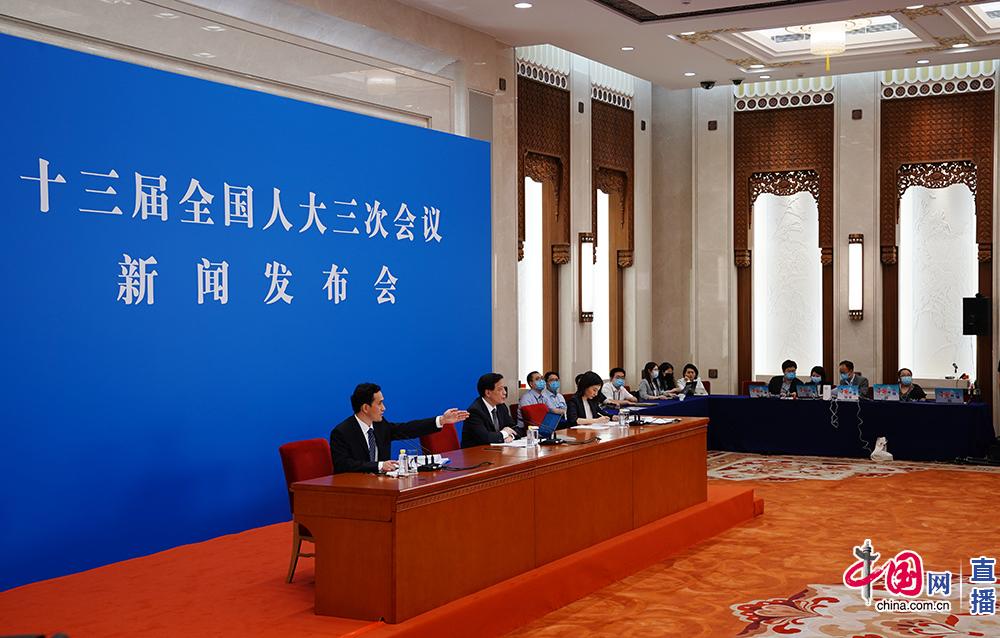 5月21日21時(shí)40分,十三屆全國(guó)人大三次會(huì)議在人民大會(huì)堂新聞發(fā)布廳舉行新聞發(fā)布會(huì),圖為大會(huì)發(fā)言人張業(yè)遂回答記者提問(wèn)。中國(guó)網(wǎng)記者 楊佳 攝