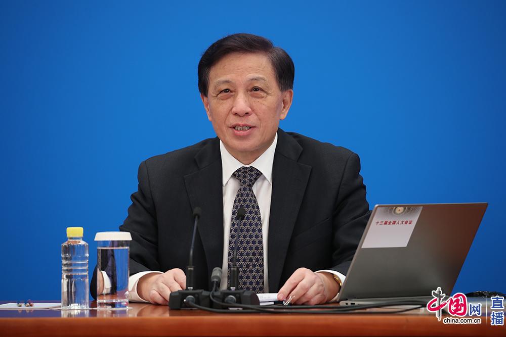 5月21日,十三屆全國(guó)人大三次會(huì)議在人民大會(huì)堂新聞發(fā)布廳舉行新聞發(fā)布會(huì),大會(huì)發(fā)言人張業(yè)遂就大會(huì)議程和人大工作相關(guān)問(wèn)題回答中外記者提問(wèn)。中國(guó)網(wǎng)記者 楊佳攝