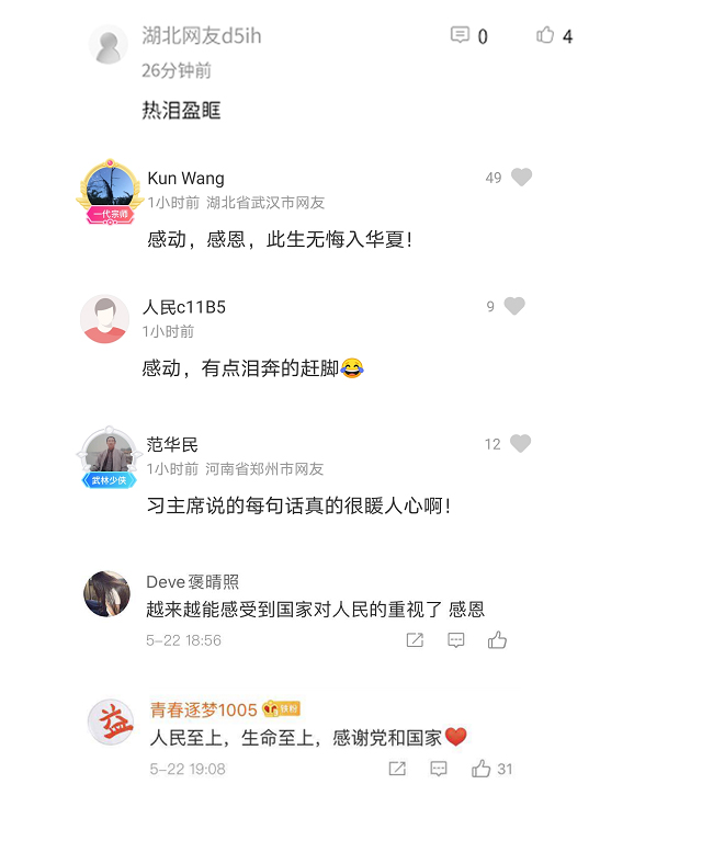 許多網(wǎng)友回應(yīng):“越來(lái)越感覺到國(guó)家對(duì)人民的重視了”“真的很驕傲,在我們國(guó)家人民群眾永遠(yuǎn)是最重要的”“人民的力量是無(wú)窮的”……