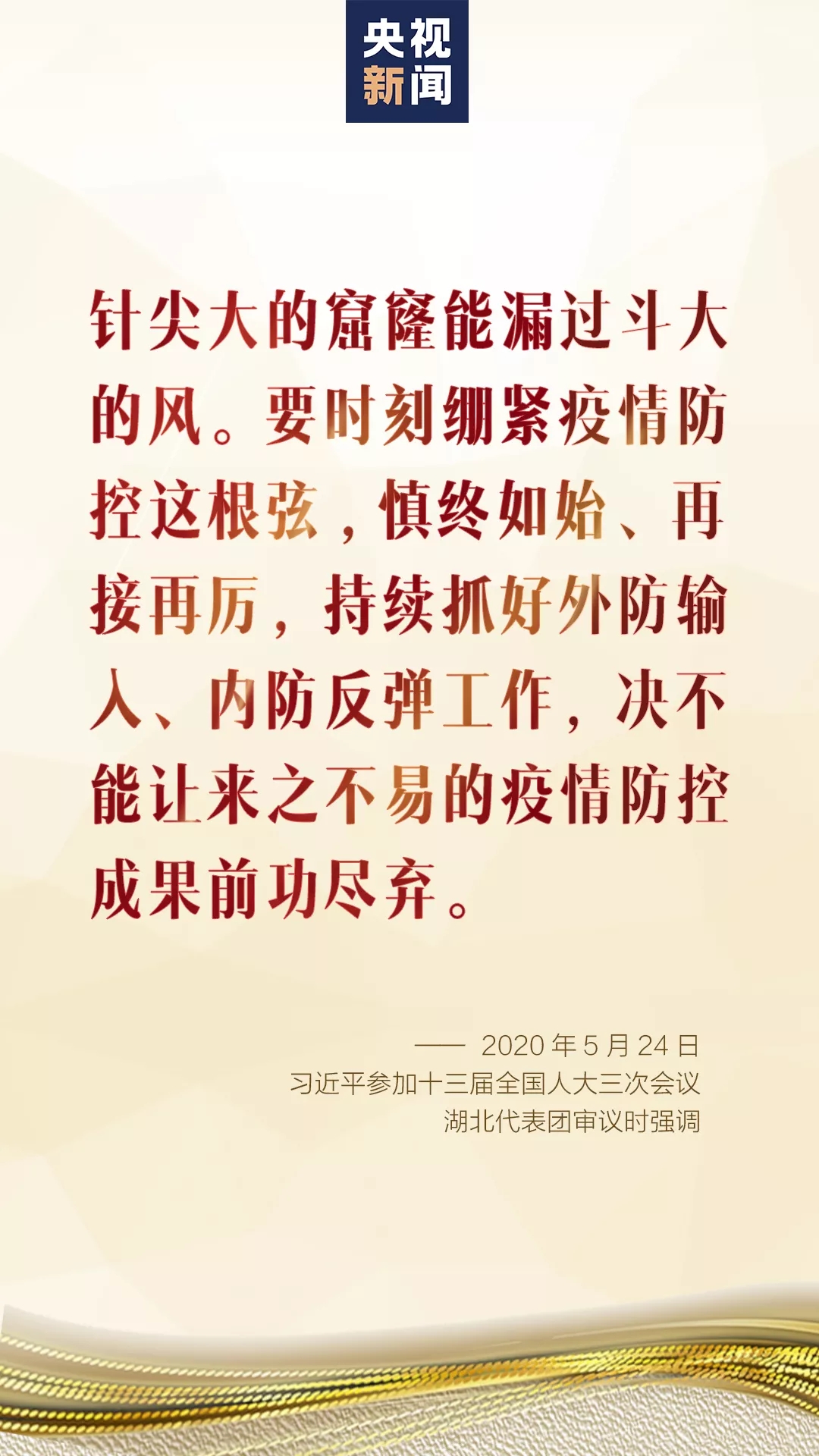 針尖大的窟窿能漏過斗大的風(fēng)。要時(shí)刻繃緊疫情防控這根弦,慎終如始、再接再厲,持續(xù)抓好外防輸入、內(nèi)防反彈工作,決不能讓來之不易的疫情防控成果前功盡棄。