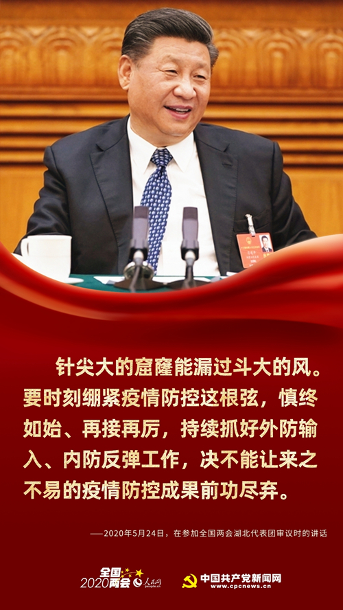 “針尖大的窟窿能漏過斗大的風(fēng)。”在湖北代表團(tuán)審議現(xiàn)場(chǎng),習(xí)近平強(qiáng)調(diào),要時(shí)刻繃緊疫情防控這根弦,慎終如始、再接再厲,持續(xù)抓好外防輸入、內(nèi)防反彈工作,決不能讓來之不易的疫情防控成果前功盡棄。