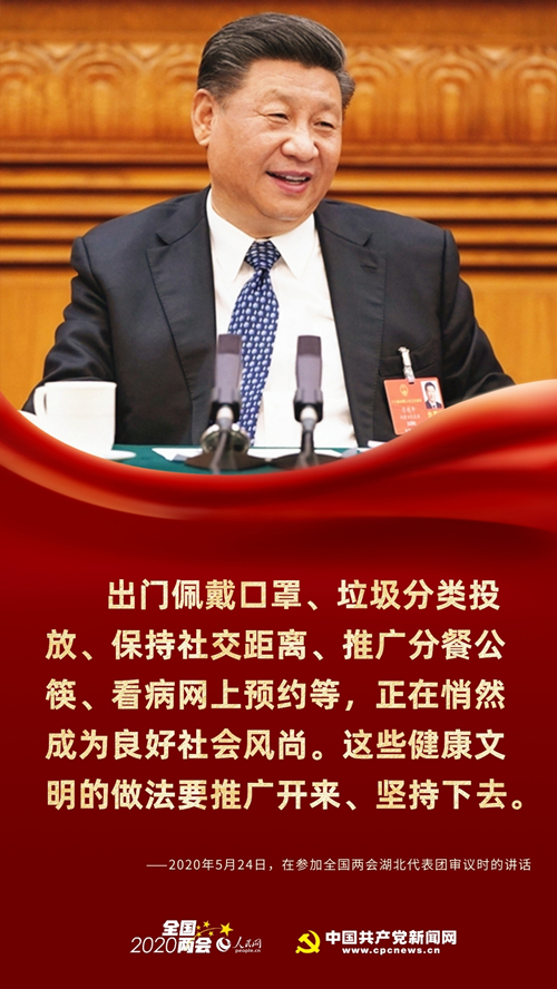 同時(shí),習(xí)近平指出,出門佩戴口罩、垃圾分類投放、保持社交距離、推廣分餐公筷、看病網(wǎng)上預(yù)約等,正在悄然成為良好社會(huì)風(fēng)尚。這些健康文明的做法要推廣開來、堅(jiān)持下去。