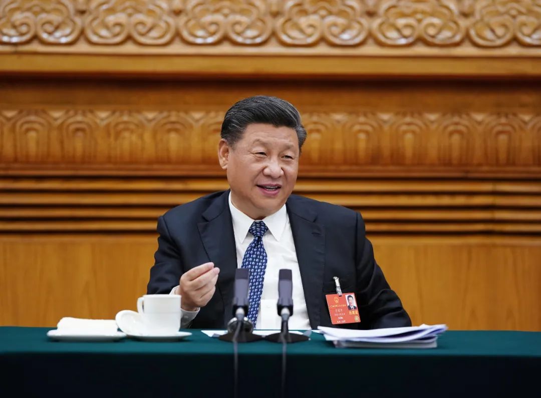 5月24日,中共中央總書記、國家主席、中央軍委主席習近平參加十三屆全國人大三次會議湖北代表團的審議。新華社記者 李學仁 攝