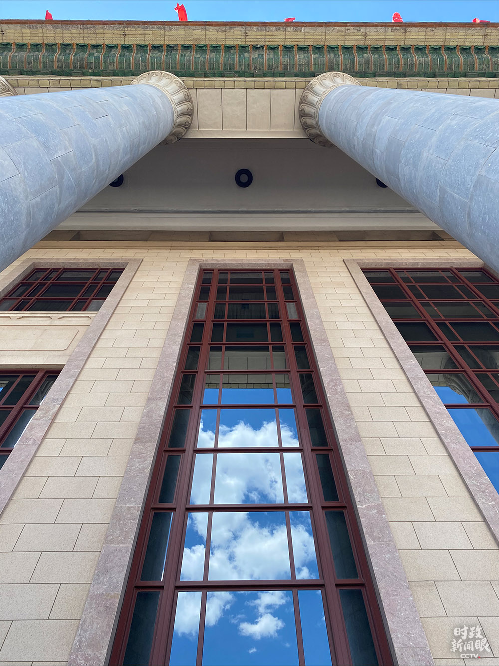 △大會(huì)堂的玻璃幕墻是“自然投影儀”。(總臺(tái)央視記者趙東辰拍攝)