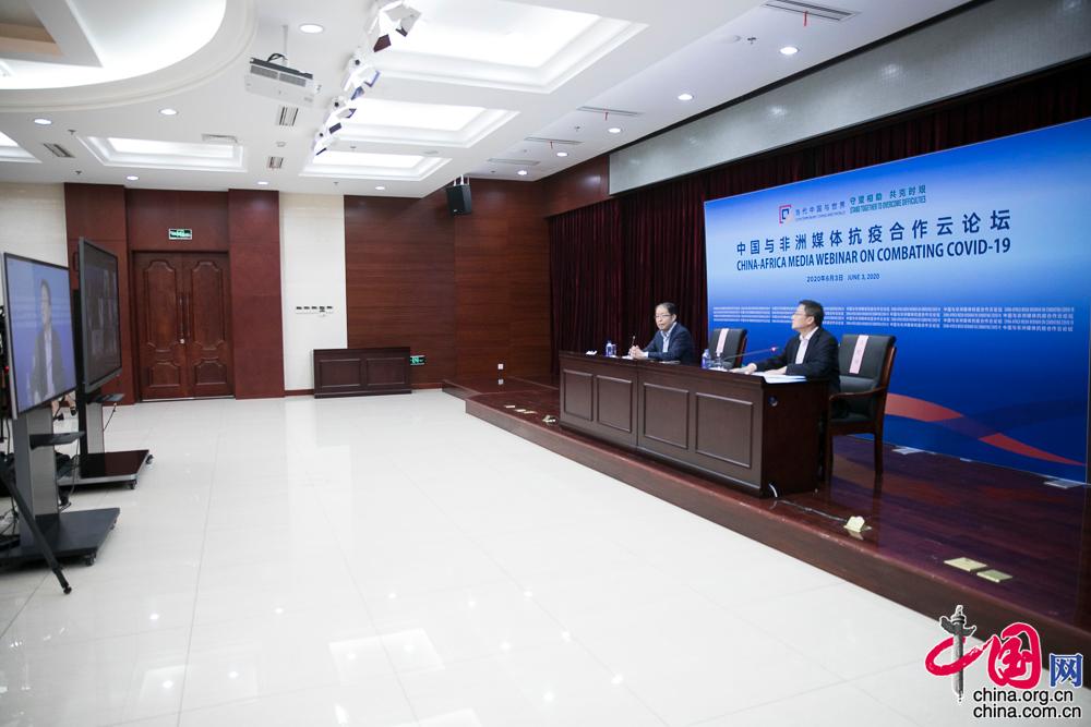守望相助,共克時艱”中國與非洲媒體抗疫合作云論壇主會場。中國網(wǎng)記者 董寧 攝影