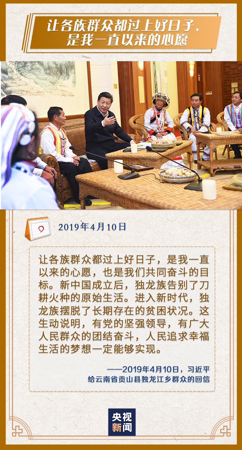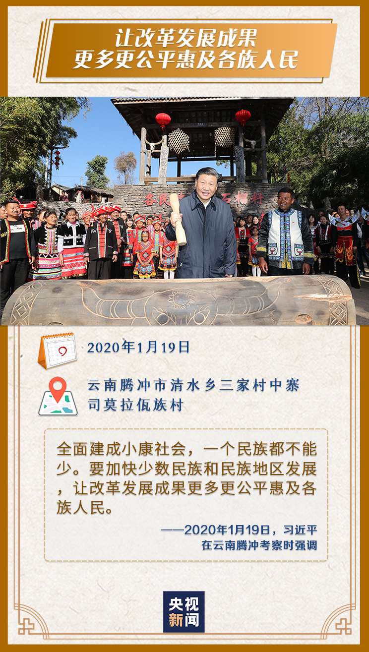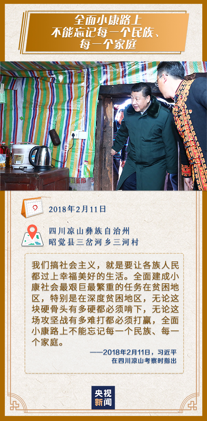 這些年,習(xí)近平總書記多次深入民族地區(qū)調(diào)研,與鄉(xiāng)親們共商脫貧致富大計,開出一張張脫貧“藥方”:在湘西十八洞村,他首次提出了“精準(zhǔn)扶貧”;在大涼山腹地,他囑咐村第一書記和駐村工作隊,要真抓實干、堅持不懈;在云南三家村中寨司莫拉佤族村,他指出,鄉(xiāng)親們脫貧只是邁向幸福生活的第一步,是新生活、新奮斗的起點。