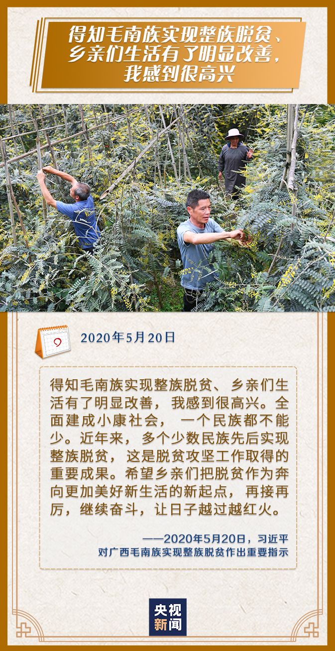 在習(xí)近平的深情關(guān)懷下,民族地區(qū)脫貧成效顯著。截至2019年11月,民族八省區(qū)貧困發(fā)生率下降到0.79%。28個人口較少民族中,基諾族、德昂族、獨龍族、毛南族等25個民族已實現(xiàn)“整族脫貧”,易地扶貧搬遷、教育扶貧、產(chǎn)業(yè)扶貧等扶貧模式更讓廣大少數(shù)民族群眾的日子一天比一天更紅火。