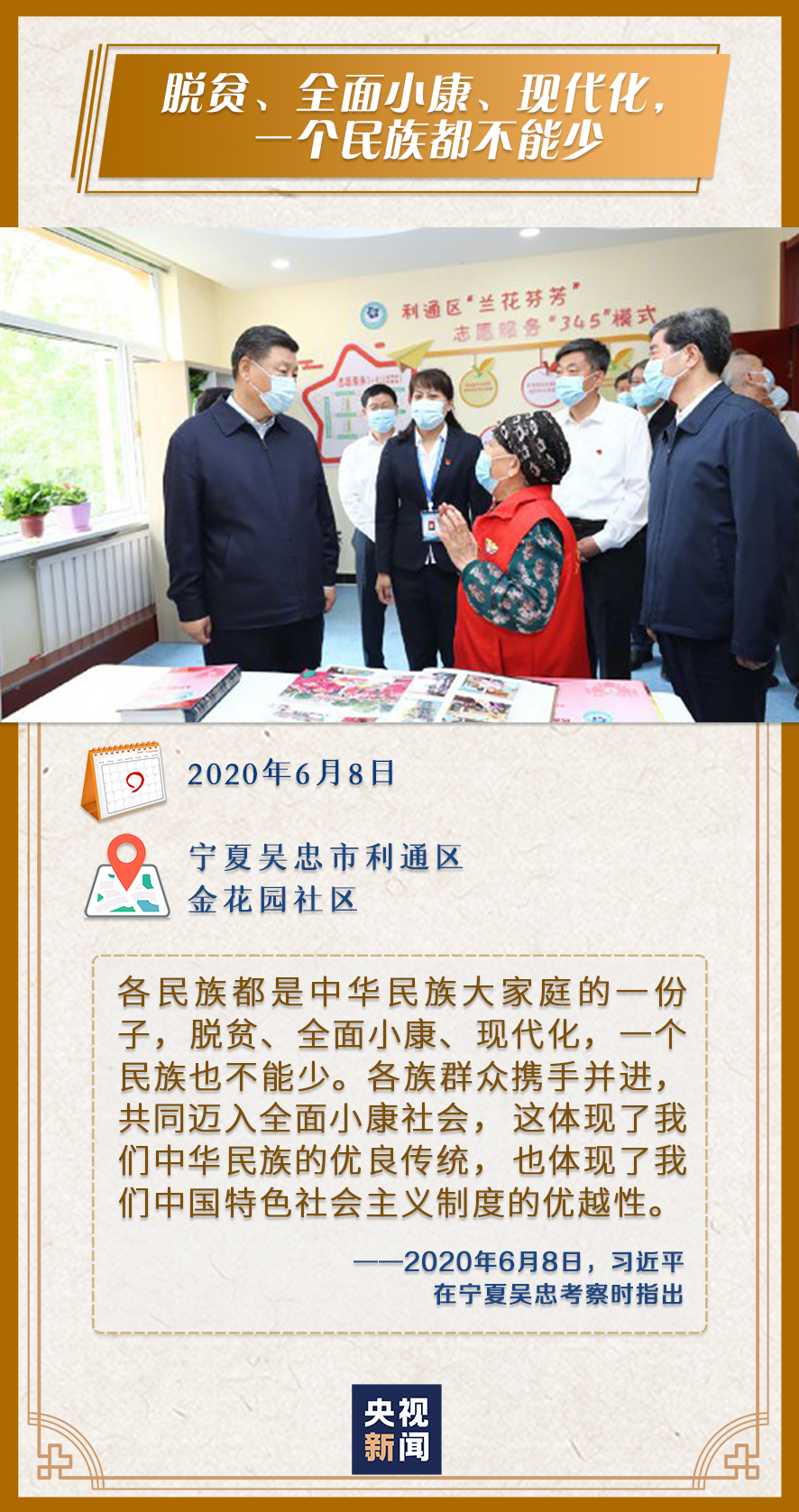 “各民族都是中華民族大家庭的一份子,脫貧、全面小康、現(xiàn)代化,一個民族也不能少!绷(xí)近平總書記在寧夏考察期間的暖心話,令各族群眾倍感振奮,深受鼓舞。