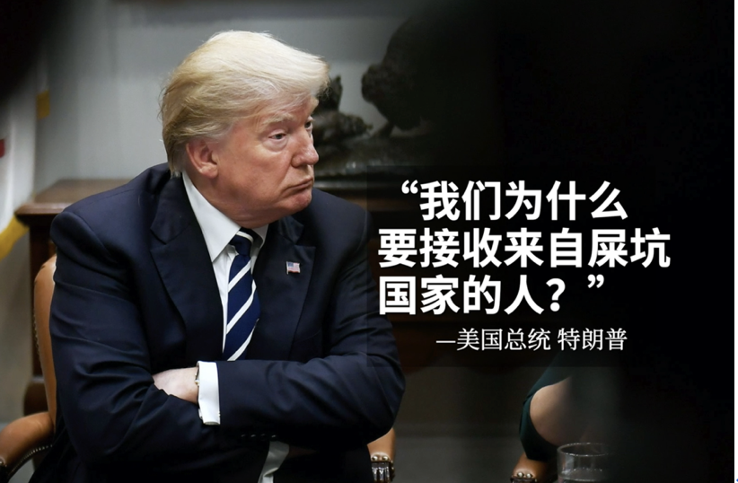 據(jù)《華盛頓郵報》報道,2018年1月11日,白宮在一場移民政策會議上,總統(tǒng)特朗普在提到海地、薩爾瓦多和部分非洲國家的移民時,竟然說“我們?yōu)槭裁唇邮諄碜允嚎訃遥╯hithole countries)的人?