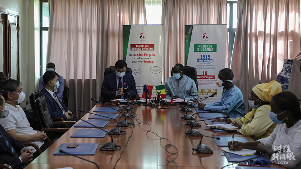 △4月22日,塞內(nèi)加爾舉行中國援塞抗擊新冠肺炎疫情物資交接儀式。這批抗疫物資分別由中國政府、兩家在塞中資企業(yè)捐贈(zèng)。(總臺(tái)央視記者韓蓄提供)