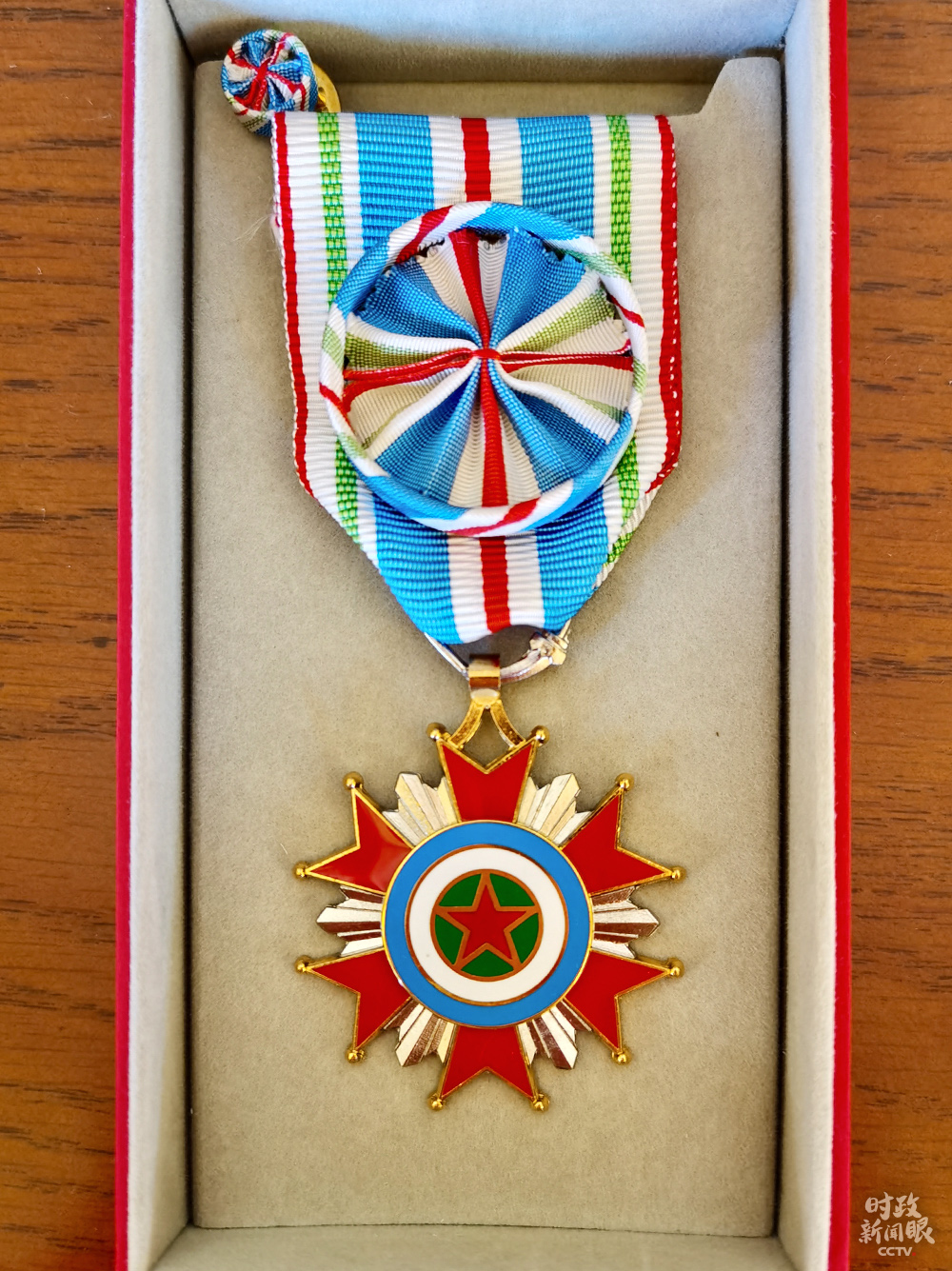 △5月10日,吉布提共和國總理卡米勒向中國赴吉布提抗疫醫(yī)療專家組授勛。曾勇組長被授予“軍官級(jí)獨(dú)立日勛章”。(總臺(tái)央視記者馬培敏提供)