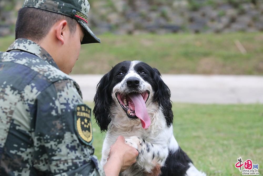 爾杰深受官兵們的喜愛,是緝毒戰(zhàn)線上的“明星犬”。廖鍵 攝