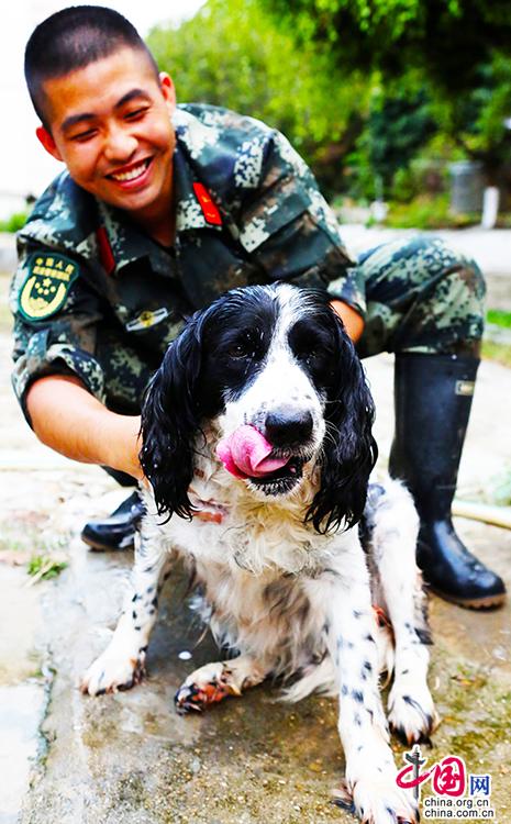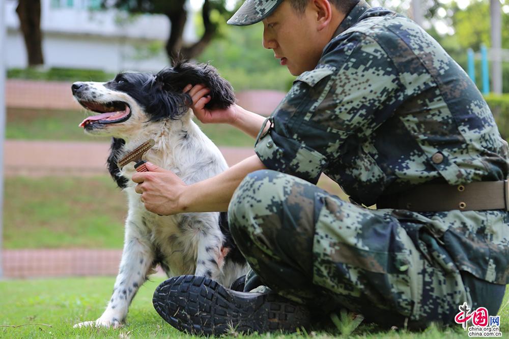 “它們也是戰(zhàn)友,是戰(zhàn)斗犬,我們從來不稱為狗!”警犬班班長朱恒星介紹,犬沒有汗腺,從每年的四月份起,直到11月,戰(zhàn)士們每天都要給每只犬洗澡消暑,退役的警犬也享受著退役前的同等待遇。