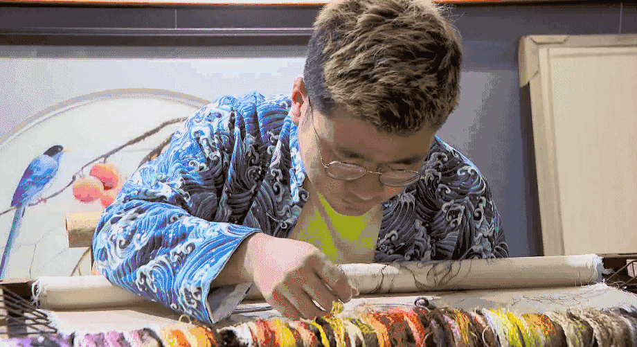 他說希望通過自己的設計,嘗試各種創(chuàng)新形式,讓更多人喜歡蘇繡,作為一名傳承人有義務把蘇繡傳承好、發(fā)展好。