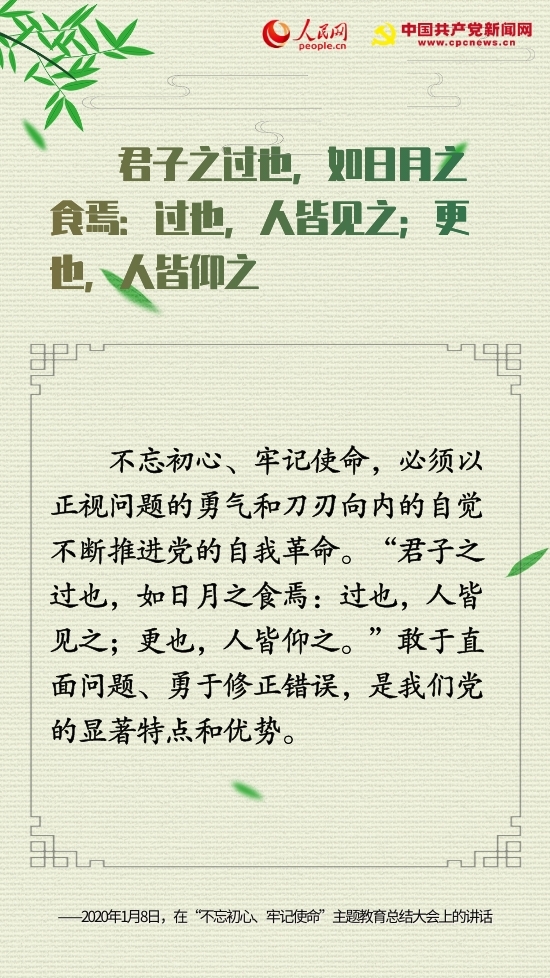 以古為鏡、旁征博引,習(xí)近平總書記多次在論述中國共產(chǎn)黨人的初心使命時(shí)引用古典名句,并賦予它們鮮活的當(dāng)代價(jià)值與意義,意境深遠(yuǎn)、引人入勝。