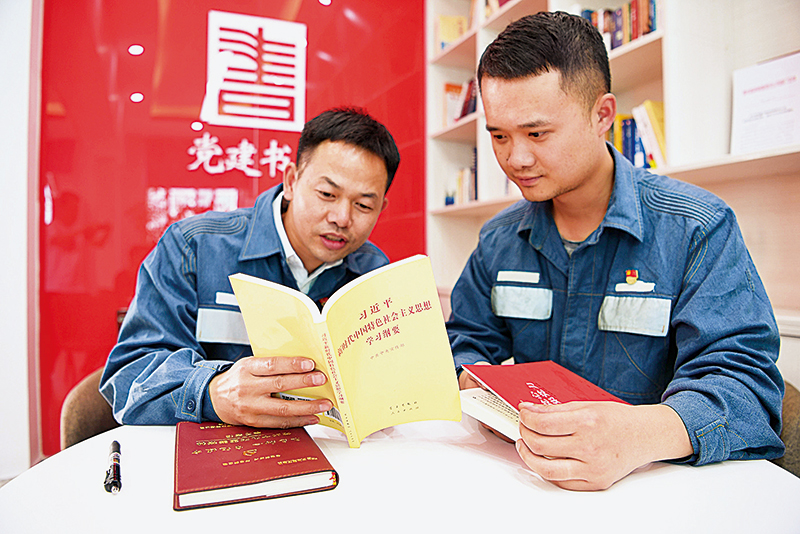 當(dāng)前,理論武裝工作的首要任務(wù)就是堅(jiān)持用習(xí)近平新時代中國特色社會主義思想武裝全黨。圖為南方電網(wǎng)公司貴州凱里供電局精心打造基層黨支部黨建書屋,該公司黨員在黨建書屋學(xué)習(xí)習(xí)近平新時代中國特色社會主義思想。 人民圖片 蔡興文/攝