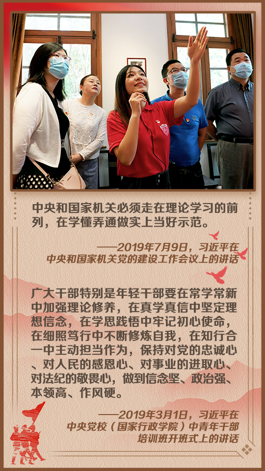 2020年1月8日,習(xí)近平在“不忘初心、牢記使命”主題教育總結(jié)大會上指出:“要把學(xué)習(xí)貫徹黨的創(chuàng)新理論作為思想武裝的重中之重,同學(xué)習(xí)馬克思主義基本原理貫通起來,同學(xué)習(xí)黨史、新中國史、改革開放史、社會主義發(fā)展史結(jié)合起來,同新時代我們進(jìn)行偉大斗爭、建設(shè)偉大工程、推進(jìn)偉大事業(yè)、實現(xiàn)偉大夢想的豐富實踐聯(lián)系起來,在學(xué)懂弄通做實上下苦功夫,在解放思想中統(tǒng)一思想,在深化認(rèn)識中提高認(rèn)識,切實增強(qiáng)貫徹落實的思想自覺和行動自覺。”