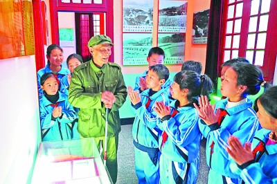 老戰(zhàn)士在江西省德興市龍頭山革命烈士紀(jì)念館給學(xué)生講解。新華社發(fā)