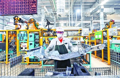武漢愛機汽車配件有限公司,工人在汽車配件生產(chǎn)線上工作。高勇攝/光明圖片