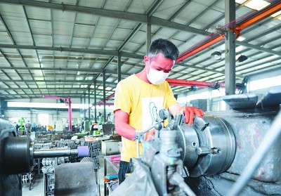 湖北森宇齒輪傳動股份有限公司生產(chǎn)車間里,工人們正在加緊生產(chǎn)。肖元玲攝/光明圖片