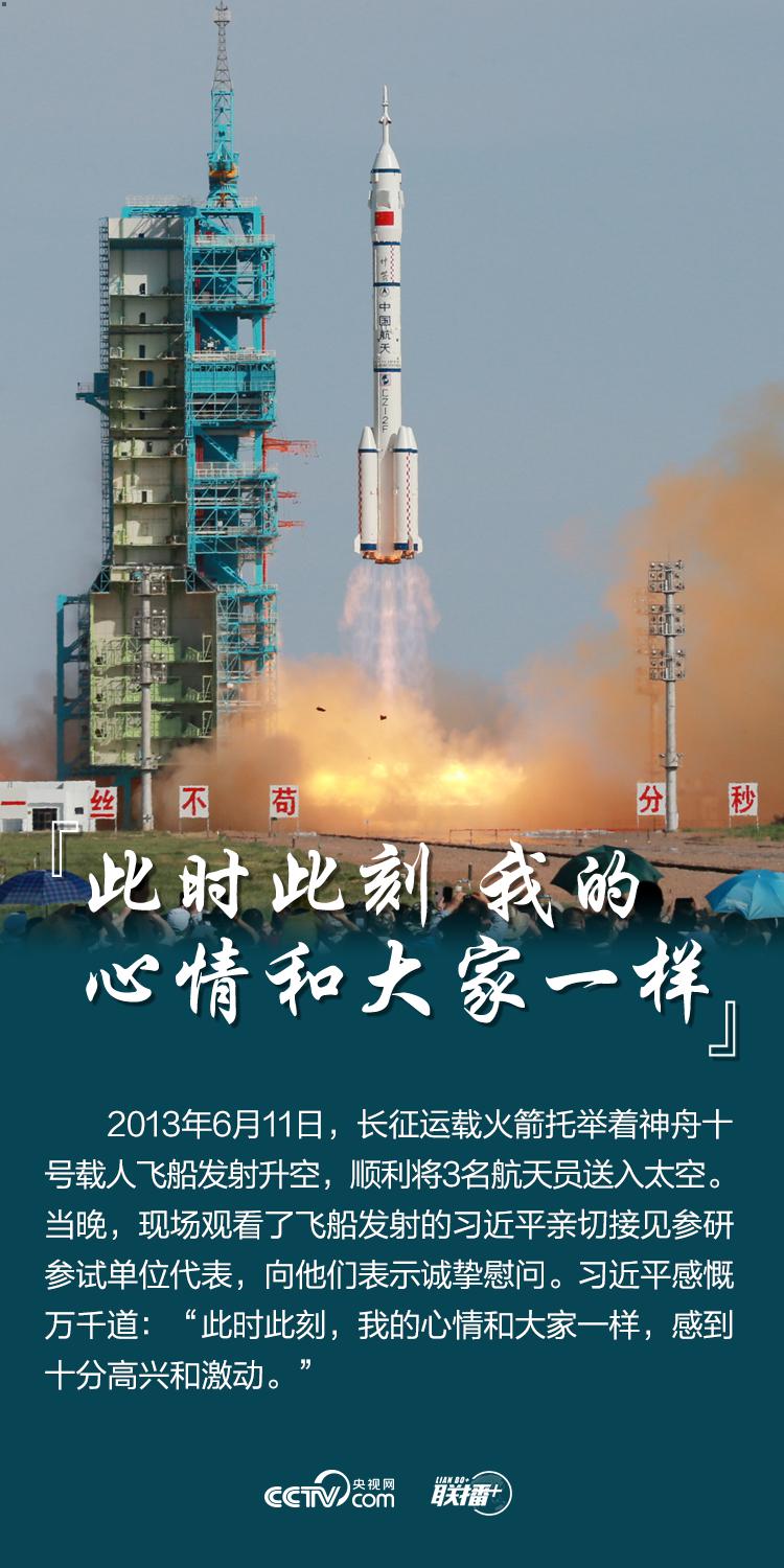 從現(xiàn)場觀看飛船發(fā)射,到與執(zhí)行任務(wù)的航天員“天地通話”,再到給老科學(xué)家回信……習(xí)近平總書記始終密切關(guān)注我國航天事業(yè)發(fā)展。在我國航天事業(yè)迎來又一個(gè)重要里程碑之際,央視網(wǎng)《聯(lián)播+》與您一起了解總書記航天情緣中的六個(gè)高光時(shí)刻,共同感受中國航天的飛躍。