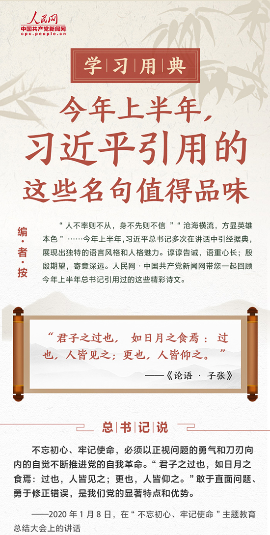 今天讓我們關(guān)注總書記上半年講話中引用的名句。>>>點(diǎn)擊查看名句解讀