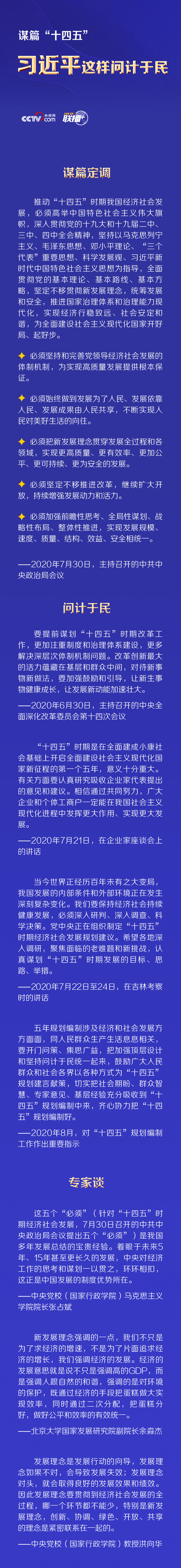 今年以來,習(xí)近平總書記多次主持召開重要會議、赴地方考察,就“十四五”開門問策,聽取大家對當(dāng)前經(jīng)濟(jì)形勢、“十四五”規(guī)劃的意見和建議,指引大家把“十四五”規(guī)劃編制好。央視網(wǎng)《聯(lián)播+》特梳理相關(guān)內(nèi)容,與您一同學(xué)習(xí)。