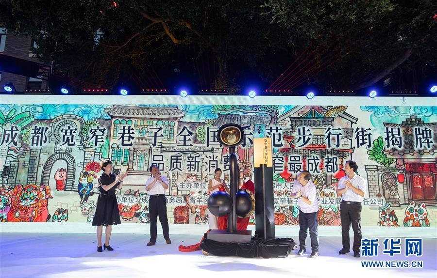 8月10日拍攝的成都寬窄巷子全國示范步行街揭牌儀式現(xiàn)場。 當(dāng)日,成都寬窄巷子舉行了以“品質(zhì)新消費 寬窄最成都”為主題的全國示范步行街揭牌儀式。 近日,南京夫子廟步行街、杭州湖濱步行街、重慶解放碑步行街、成都寬窄巷子步行街和西安大唐不夜城步行街被商務(wù)部確認為首批全國示范步行街。 新華社記者 江宏景 攝